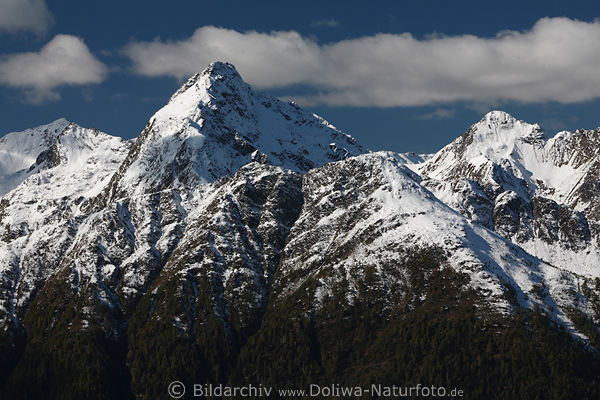 Austria white-mountains photography winter-landscape picture from Easts-Tyrol travel trip. Completely right the Torkogel 2730 m high in the white snow-dress, between it Klein Zunig 2442 m, behind the Big-Zunig left in the picture the Deferegger bolts 2729 meter.