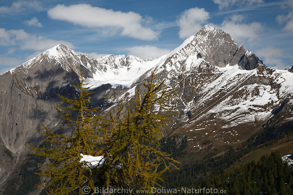 Kendlspitze 3088 Meter hoch, Bretterwand 2887 m, dazwischen in Ferne Alpengipfel Wellachkopf 3117m + Kleine Muntanitz 3192 m ü.M. Gipfelpanorama Österreich Nationalpark Hohe Tauern im Großglockner Resort