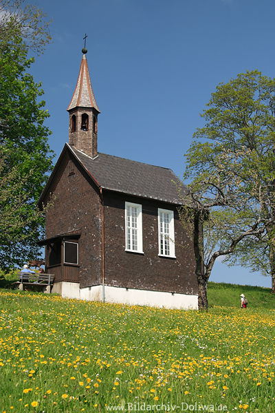 Landidylle gelben Blümchen Naturblüte gelbblühende Wiese um Kirchlein in Alpenvorland Besucher Ammenegg Reise ins Grüne Vorarlberg Frühjahr Naturfoto